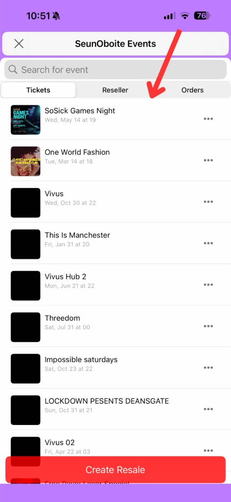- The event you want to access tickets to.